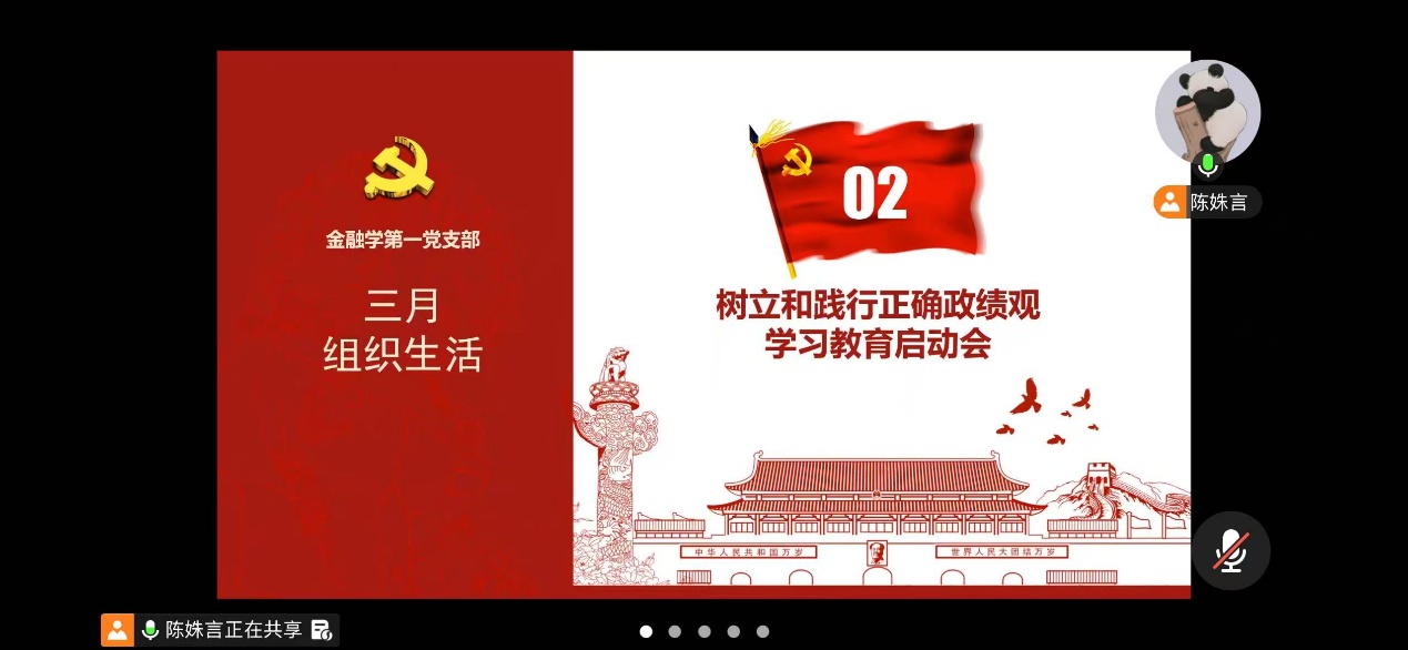 此次组织生活为金融学第一党支部树立和践行正确政绩观学习教育拉开了序幕,既让支部成员深刻理解了正确政绩观的时代内涵、核心要义与实践要求,也明确了后续学习教育的目标和方向。下一步,金融学第一党支部将严格按照学习教育实施计划,结合金融学专业特色创新活动形式,扎实开展各项学习教育工作,引导支部党员、入党积极分子把正确政绩观转化为学习科研、服务同学、践行使命的实际行动,以过硬的作风、扎实的成效夯实组织建设,为推进中国式现代化贡献青年力量。