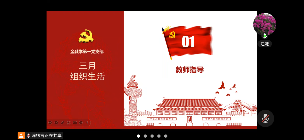 为深入贯彻落实党中央关于树立和践行正确政绩观学习教育的部署要求,扎实推进支部组织建设,2026年3月19日,金融学第一党支部召开三月组织生活,学院副院长江婕莅临指导,全体支部成员参会,会议由支部书记陈姝言主持。