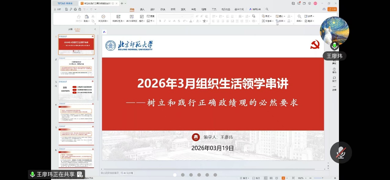 会议伊始,支部指导教师江婕老师围绕“树立和践行正确政绩观”开展专题指导,为支部学习教育工作把舵定向。江婕老师首先阐释了2026年开展树立和践行正确政绩观学习教育的深层逻辑:2026年是“十五五”规划开局之年,新征程起步阶段更需以正确政绩观引领发展方向,这既是应对当下发展机遇与挑战的现实需要,也是党的建设持续深化的必然要求。党的建设包括政治建设、思想建设、组织建设、作风建设、纪律建设,制度建设和反腐败斗争贯穿其中。党的二十大之后,中共中央发布了关于认真学习宣传贯彻党的二十大精神的决定;此后,各项学习教育依次展开:2023年的学习贯彻习近平新时代中国特色社会主义思想主题教育,聚焦思想建设,用党的创新理论凝心铸魂;2024年的党纪学习教育,聚焦纪律建设,让党员干部知敬畏、存戒惧、守底线;2025年的深入贯彻中央八项规定精神学习教育,聚焦作风建设,纠治“四风”;2026年的树立和践行正确政绩观学习教育,聚焦组织建设,特别是干部队伍的价值取向。从政治到思想,从纪律到作风,从作风到组织建设,每一步都与中心任务紧密结合,向实践聚焦,推动全面从严治党向纵深发展。