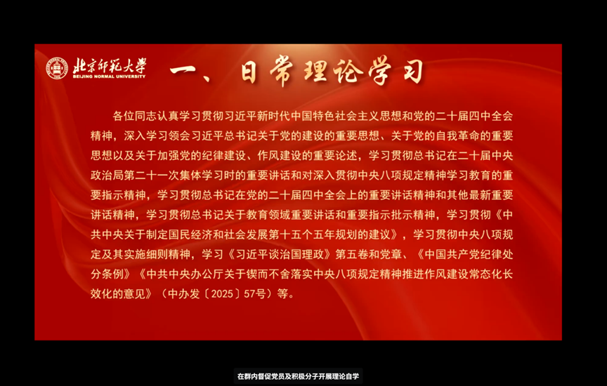 同时,支委会面向全体党员梳理并发布理论学习资料包,明确2026年起持续推进理论学习常态化,通过学习资料包、群内督学等方式,引导党员把学习贯彻党的创新理论同学业科研、实践服务紧密结合,推动学思用贯通、知信行统一。
