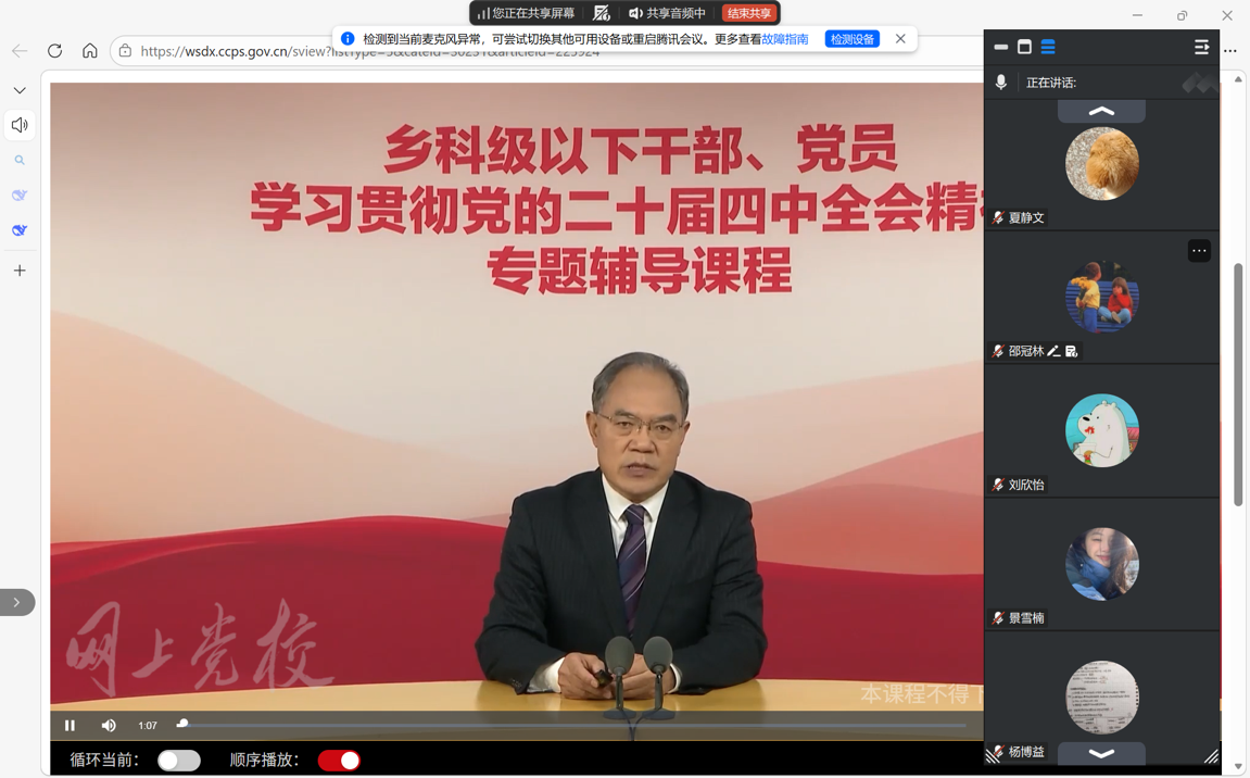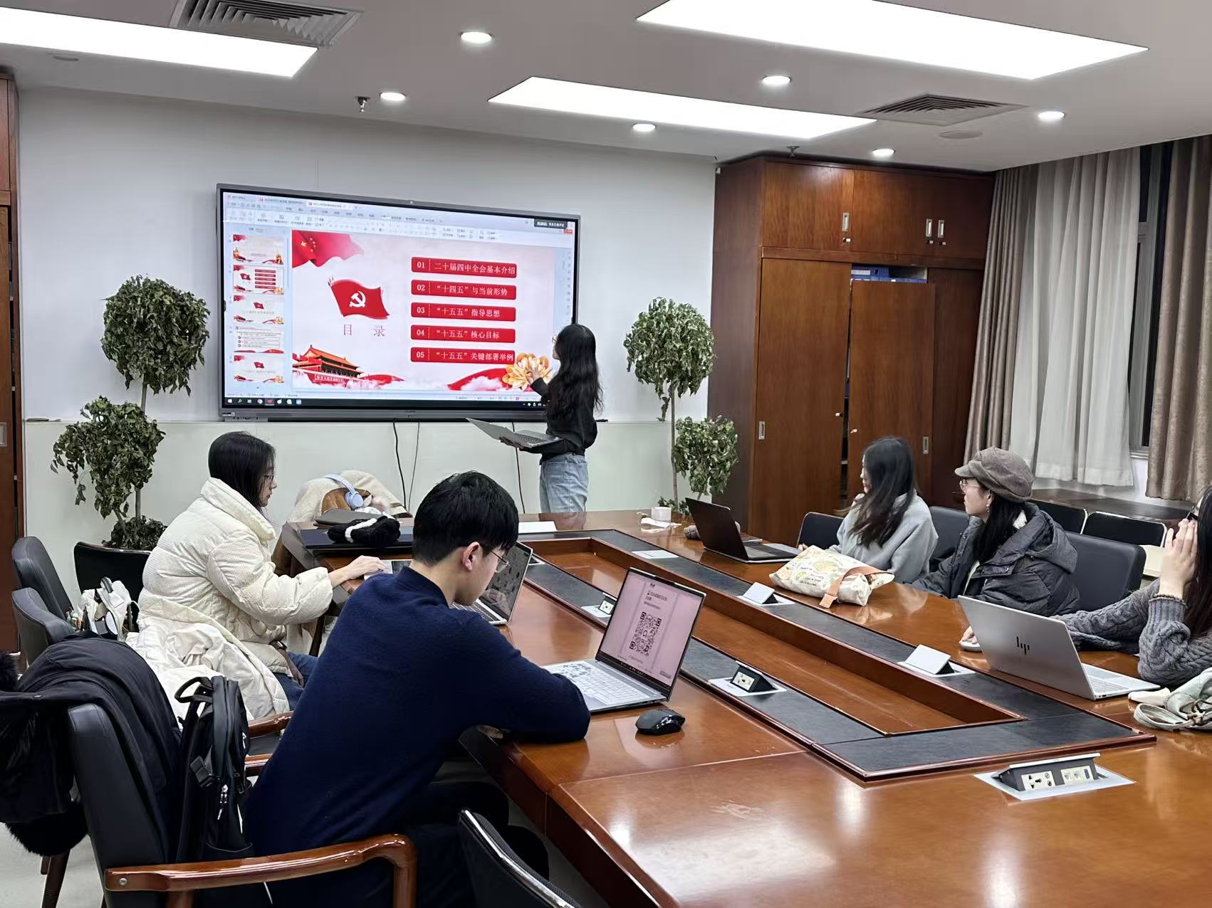 会议最后,全体成员集中收看党的二十届四中全会精神专题辅导课程。通过中央党校专家的系统解读,进一步深化了对“十五五”时期现代化产业体系建设、新发展格局构建等关键部署的理解。大家认真记录学习要点,结合前期理论学习以及批评与自我批评成果,在线上线下同步开展交流研讨。党员同志纷纷表示,专题辅导课程兼具理论深度与实践指导性,为今后立足专业领域践行全会精神提供了明确指引,未来将把学习成果转化为干事创业的实际行动,在学术研究、志愿服务等方面发挥先锋模范作用。