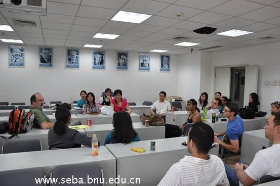 2009年5月17日上午,由Frank DuBois教授率领的美利坚大学(American University)MBA学员访问经管学院,与北京师范大学MBA学员进行了深度互动交流活动。活动以轻松愉快的沙龙形式进行,参会人员发言积极,互动热烈。本次活动在互动交流中就金融危机、国际贸易、MBA的国际化视野等话题展开了深度的交流讨论。参与交流的双方都表示,此次互动交流非常有收获。