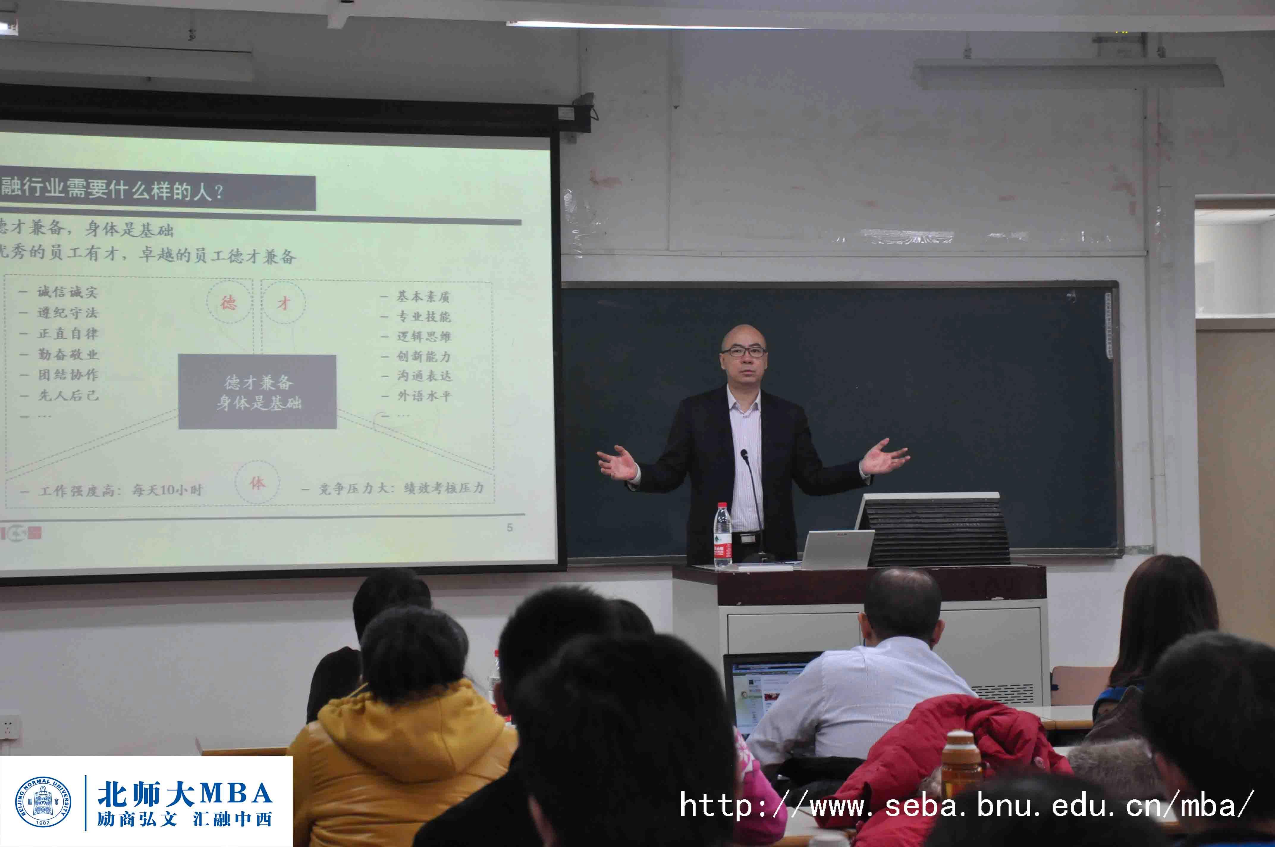 图1:北师大MBA校外导师徐刚做“如何进入金融业”专题报告