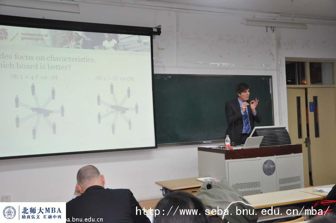 图1:Hans Van Ees在为北师大MBA学员作演讲