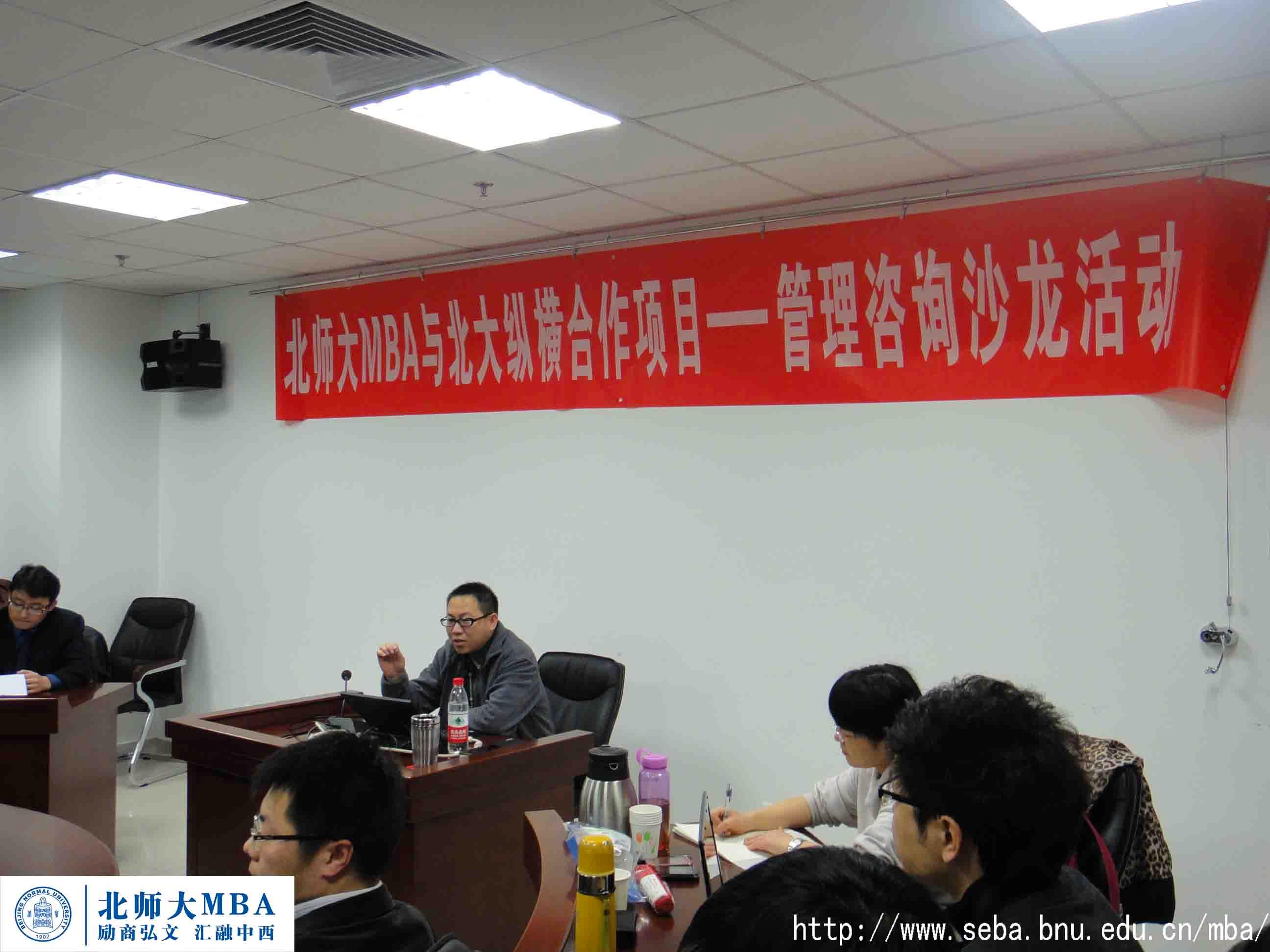 2012年3月8日,北师大MBA与北大纵横联手打造的合作项目管理咨询沙龙活动——“我与咨询不得不说的事” 在北师大后主楼1722室拉开了序幕。