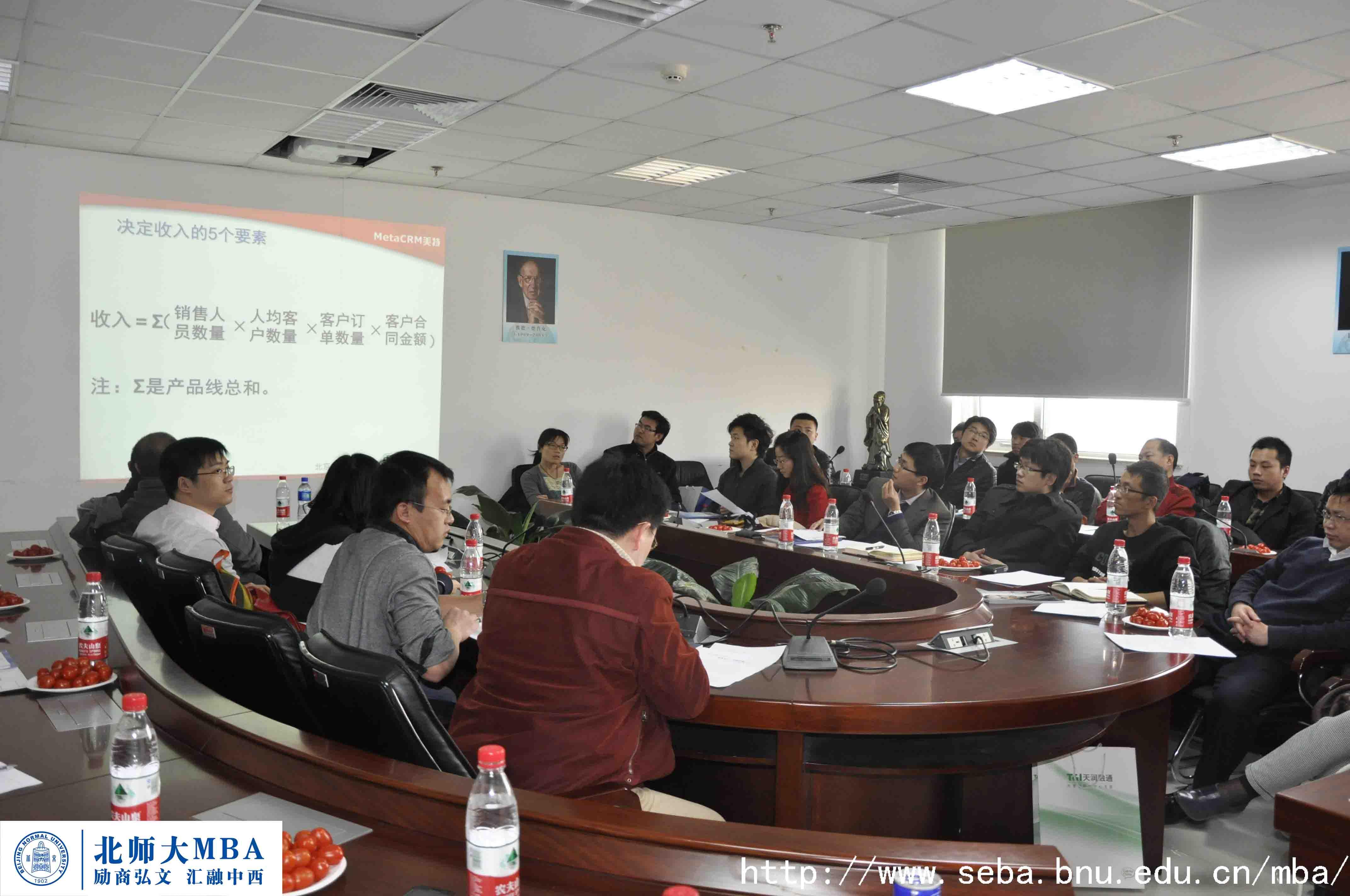 2012年3月9日,由北师大MBA与北京美特软件联合主办的“聚焦客户体验价值”主题沙龙活动,在北京师范大学后主楼1722会议室拉开帷幕。来自北师大经管学院的李静老师、美特软件的专家以及美特软件的大客户代表分别发表了精彩演讲,与到场的数十家企业共同分享企业信息化管理给企业带来的价值。北师大MBA学生积极参与沙龙活动,特别是一些在职学生本身在单位就负责管理信息化工作,与在场的嘉宾进行了深入的交流、互动。