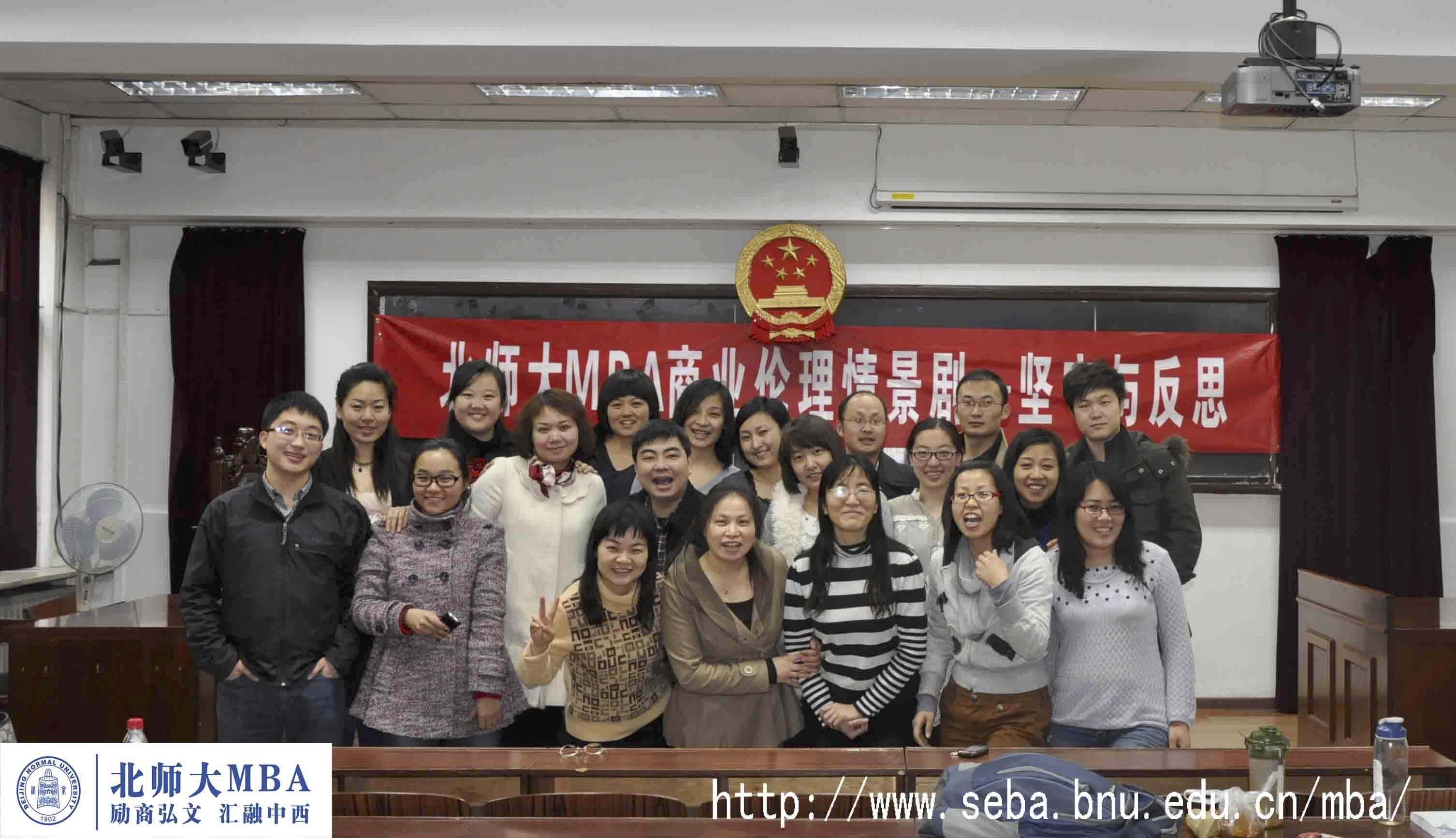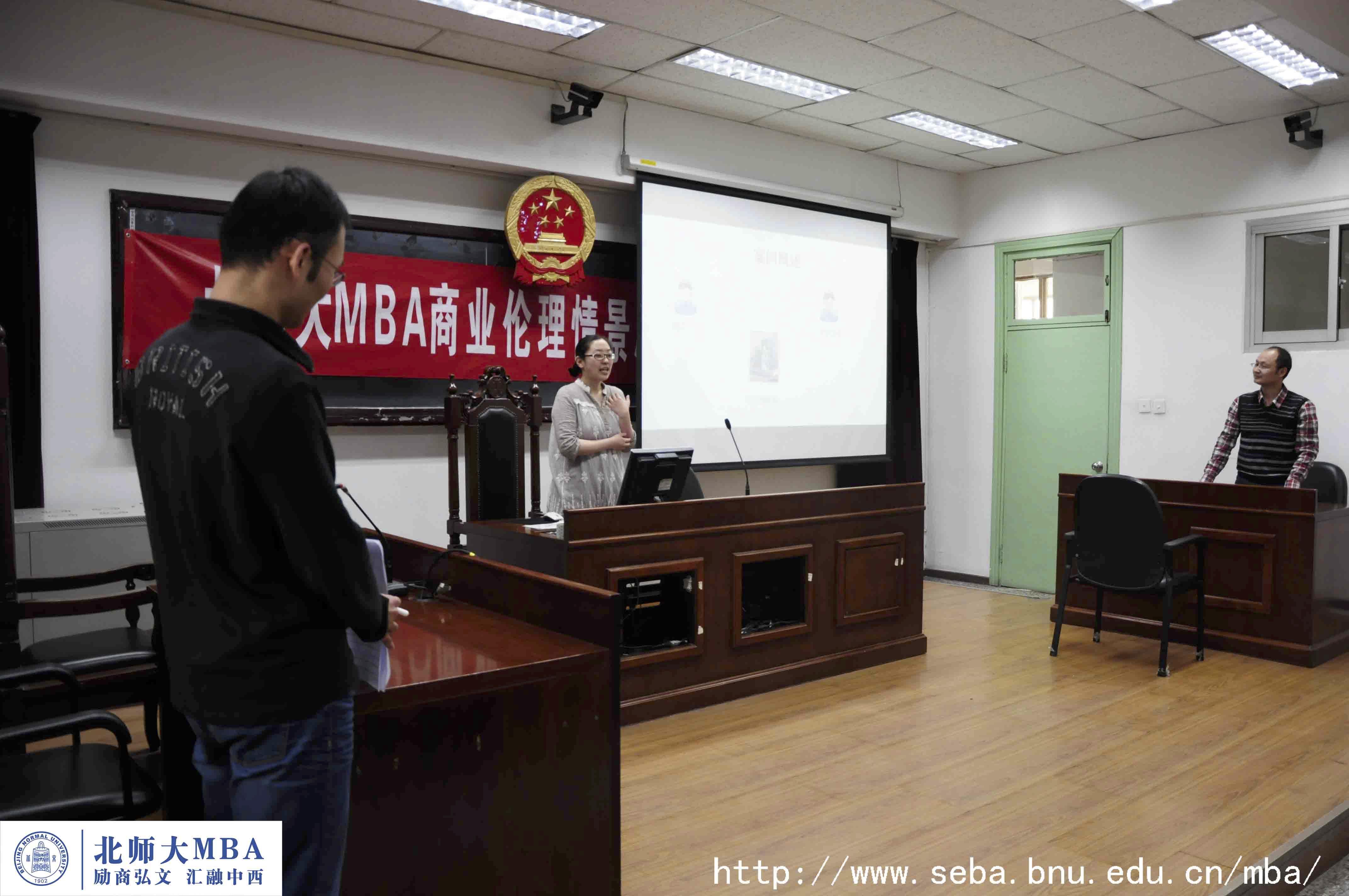 为了探寻企业存在的真正价值,为了追问商业伦理与商业利益孰重孰轻?北师大MBA《商业伦理与企业社会责任》授课教师李欲晓带领北师大MBA2011级脱产班学员以情景再现的方式对上述命题展开了一场探索之旅。3月14日,北师大MBA2012商业伦理情景剧——坚守与反思在电子楼104教室激情上演。同学们以“如此‘优秀’人才,用还是不用?”、“商业伦理与商业利益孰轻孰重?”、“归甲堂熊辩”、“‘真实的’谎言”为主题进行了精彩的表演,并对个中现象进行讨论与辩驳。