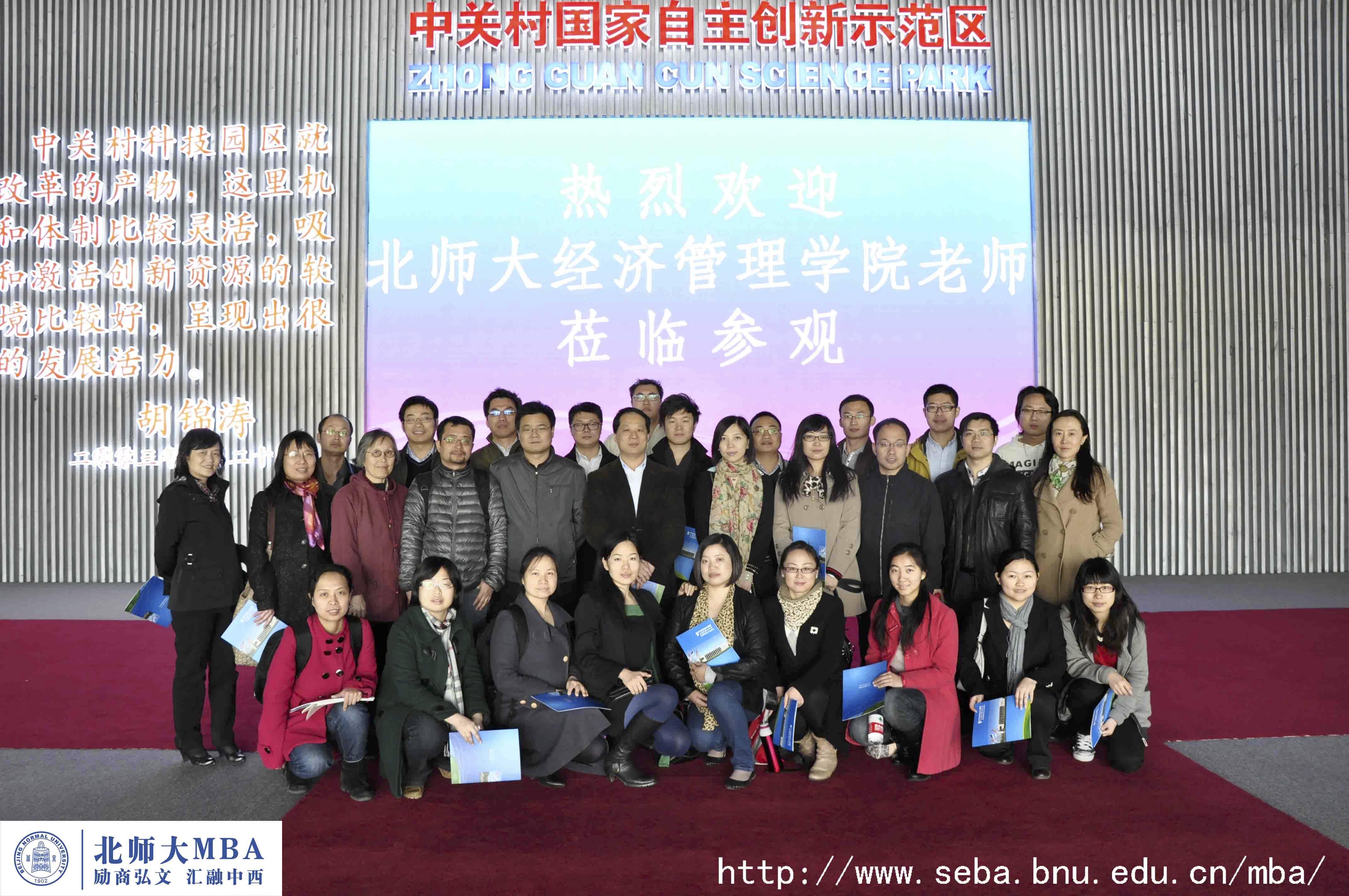 为了提升自身创新能力,在学科和人才队伍建设、基础研究等方面多出成果,多出人才,3月30日中午13:30,以副院长高明华教授带队北师大经管学院调研团赴中关村国际自主创新示范区展示中心参观学习。调研团中包括经管学院党委副书记葛玉良老师、李慧老师、申嫦娥老师、吴沁红老师、蔡宏波老师、赵向阳老师、焦豪老师、林树明老师、MBA教育中心的老师以及16名北师大MBA学生。