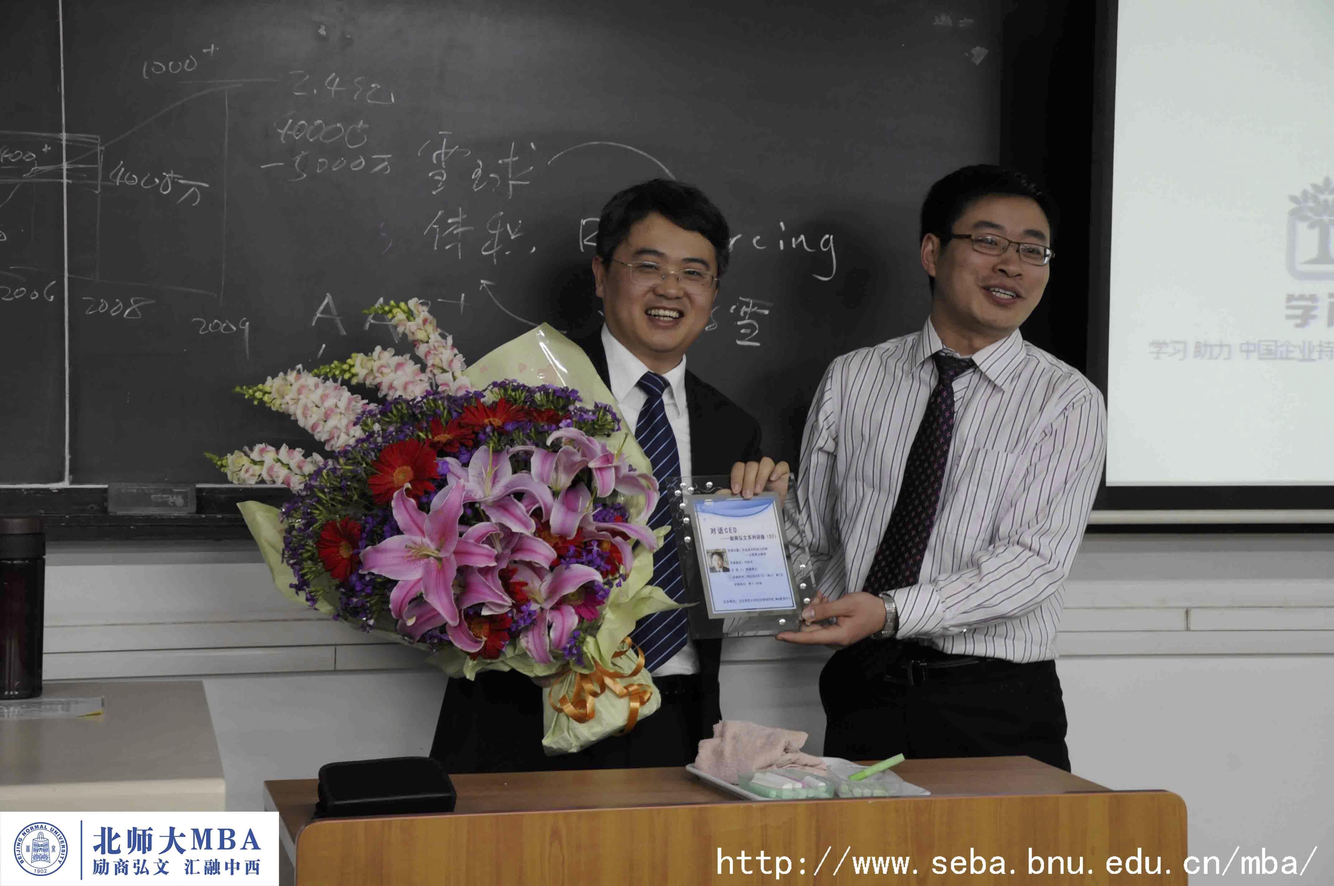图3:焦豪老师代表北师大MBA赠送邱博士鲜花