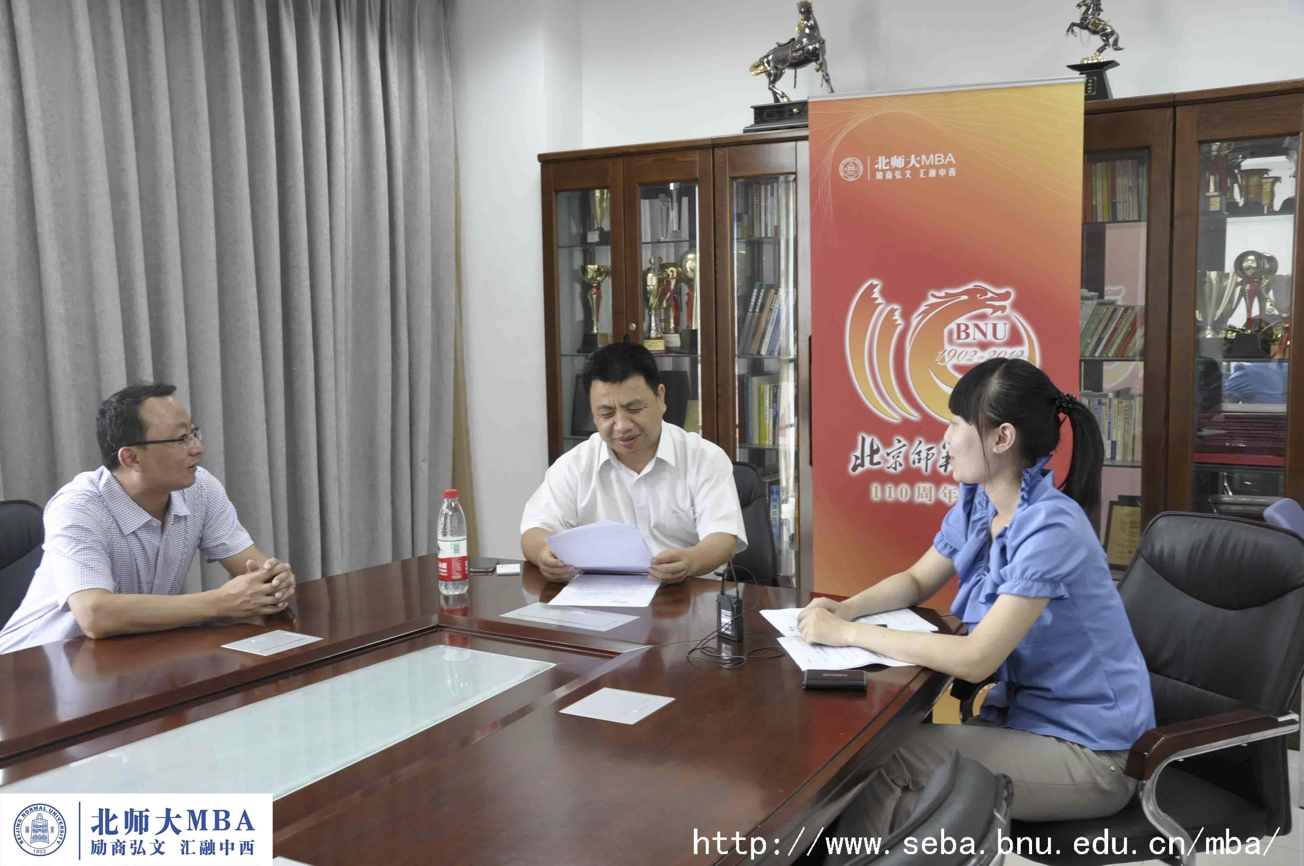 采访中,赖院长首先简要介绍了经管学院三十余年的发展、MBA项目自2007年获批到三年试办评估后教指委给予的高度评价,然后对北师大MBA “励商弘文·汇融中西”的品牌理念进行了详尽解读。