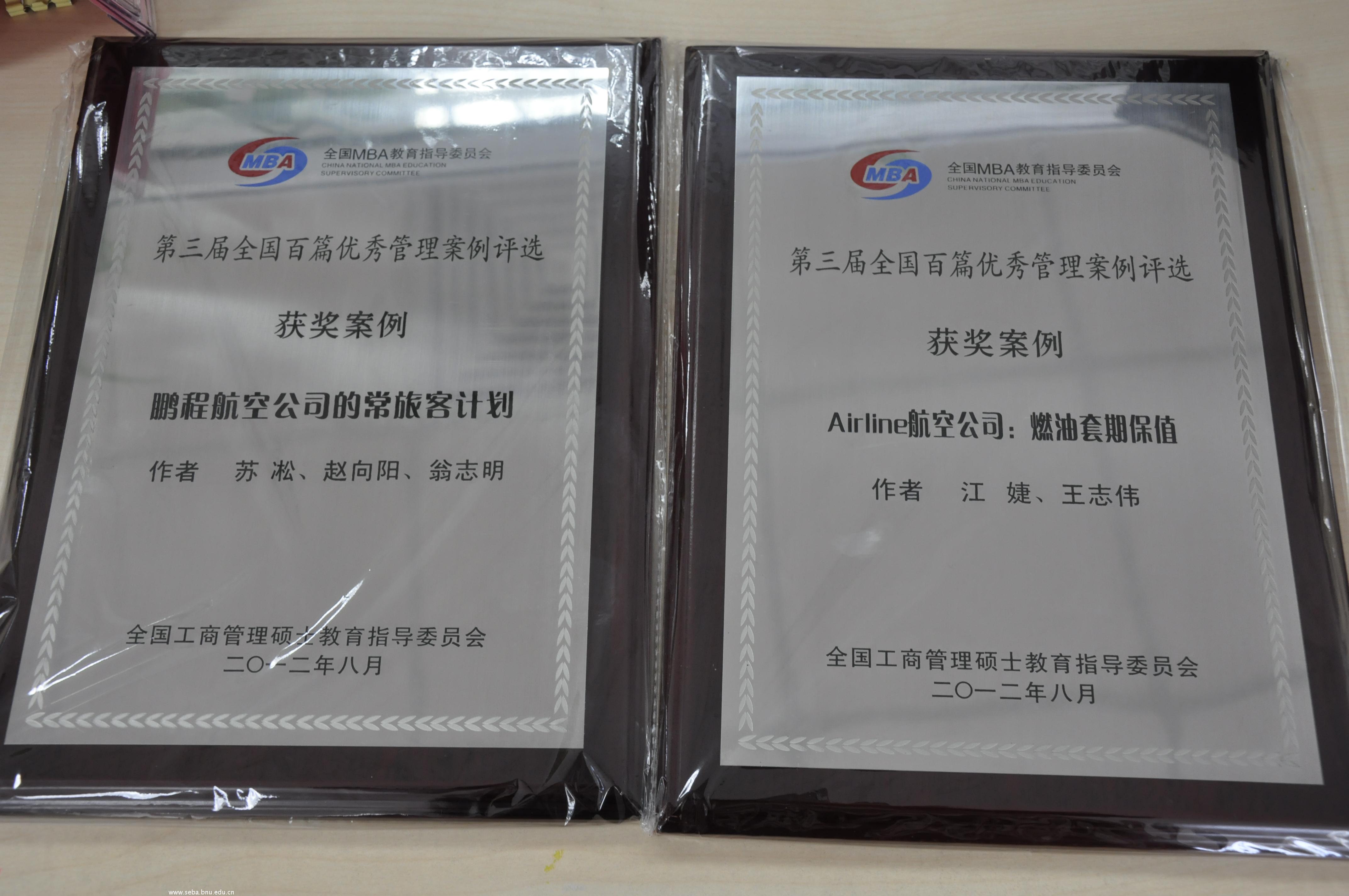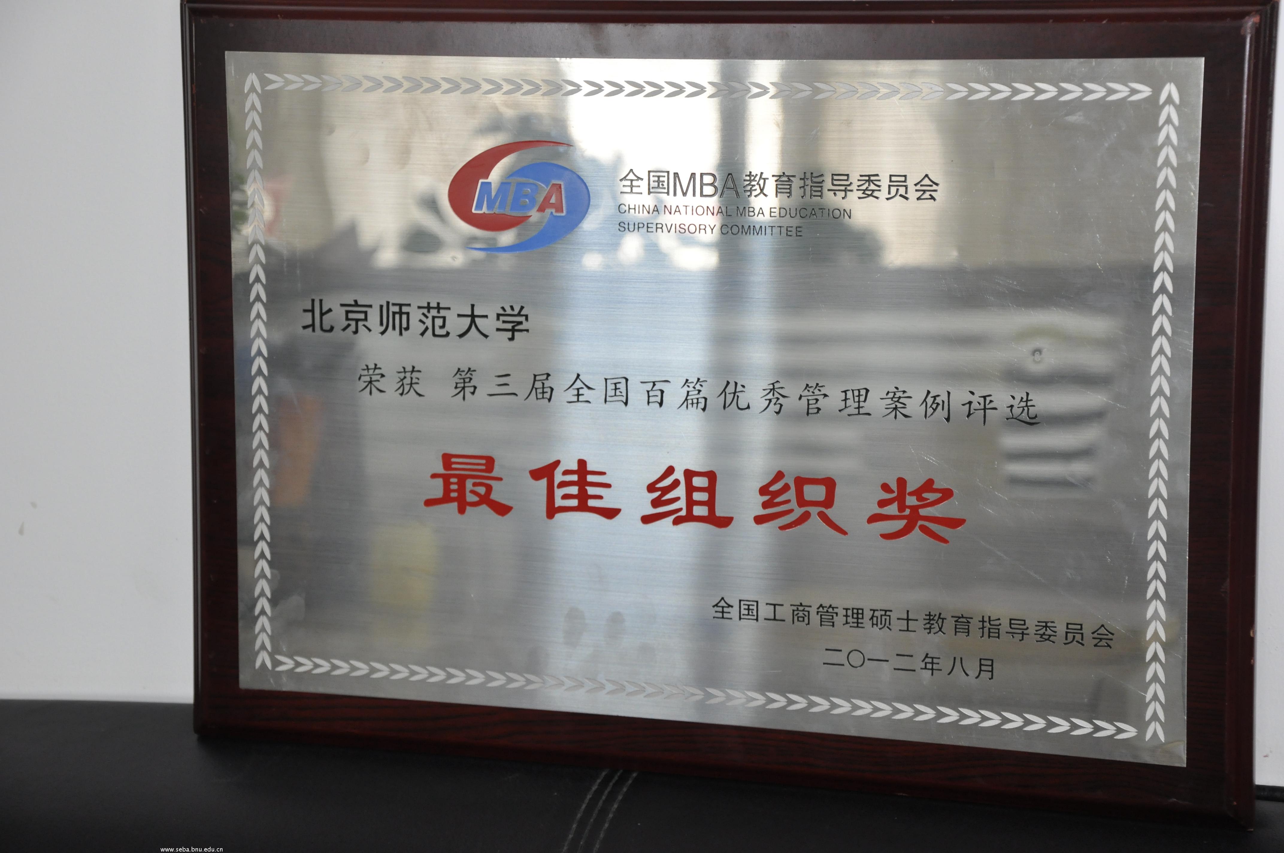 大会上,全国MBA教育指导委员会还对入选第三届全国“百篇优秀管理案例”进行了表彰,并颁发了奖章和证书。在此次“百篇优秀管理案例”活动中,北师大MBA案例中心进行了精心组织,赵向阳老师还积极与众多教师联系与沟通,我院有3位教师的2篇案例成功入选“百篇优秀管理案例”,并帮助我院荣获“最佳组织奖”。