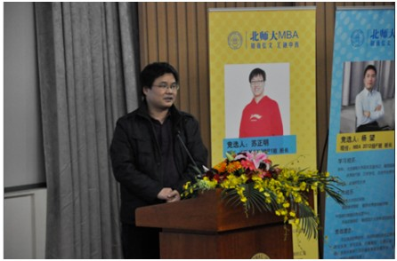 图7:第五届北师大MBA联合会主席候选人苏正明同学作主题演讲