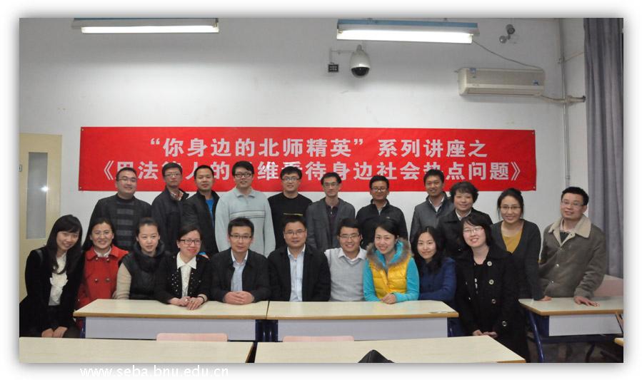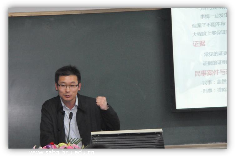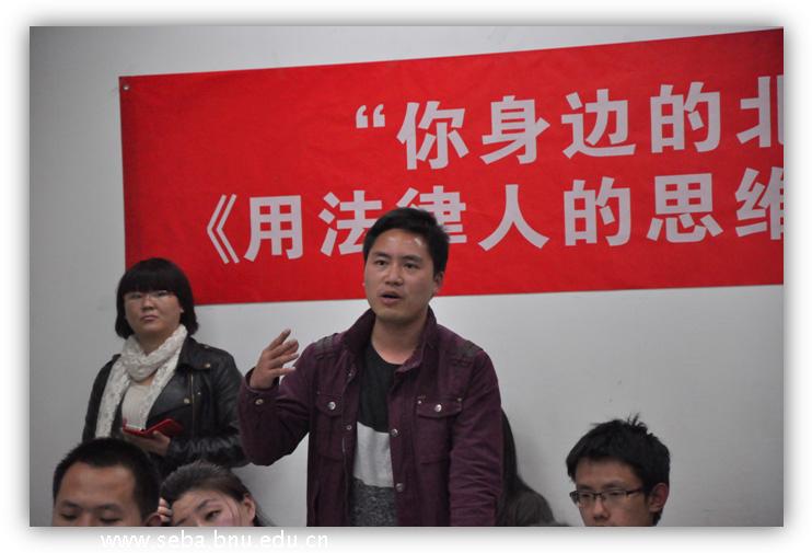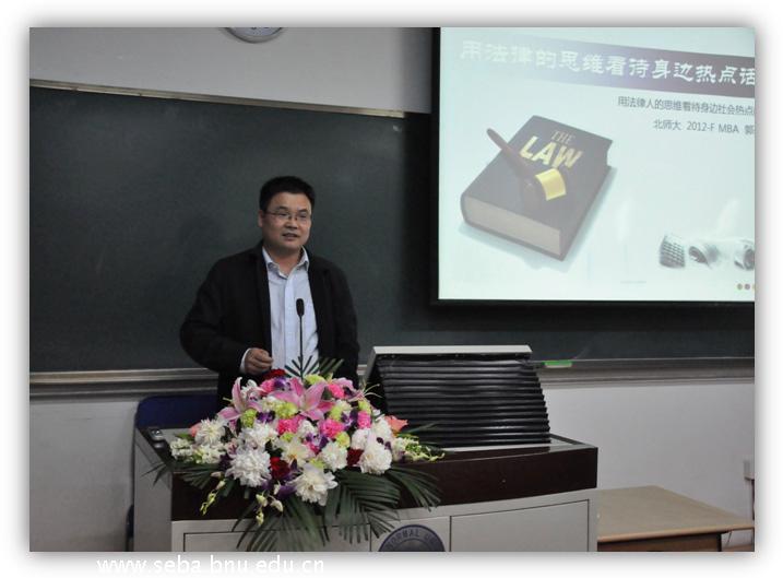 2013年4月23日晚,“你身边的北师精英”系列讲座的首场讲座——《以法律人的思维看待身边社会热点问题》专题分享在教二204室成功举办。主讲嘉宾为2012级MBA 郭昭利同学。郭律师为中国人民大学法学院民商法硕士,主要业务领域为金融、公司改制、公司治理、企业投资等。曾担任多家大型企业的法律顾问,北京市君泰律师事务所高级合伙人。此次讲座得到了MBA同学的热烈参与,现场掌声不断、座无虚席。