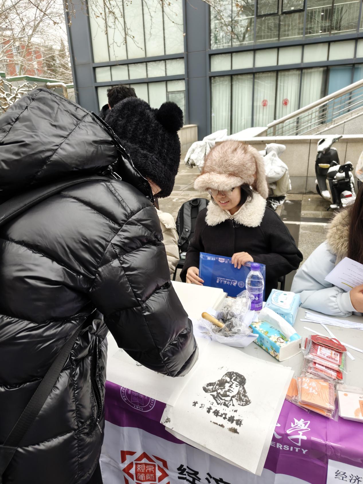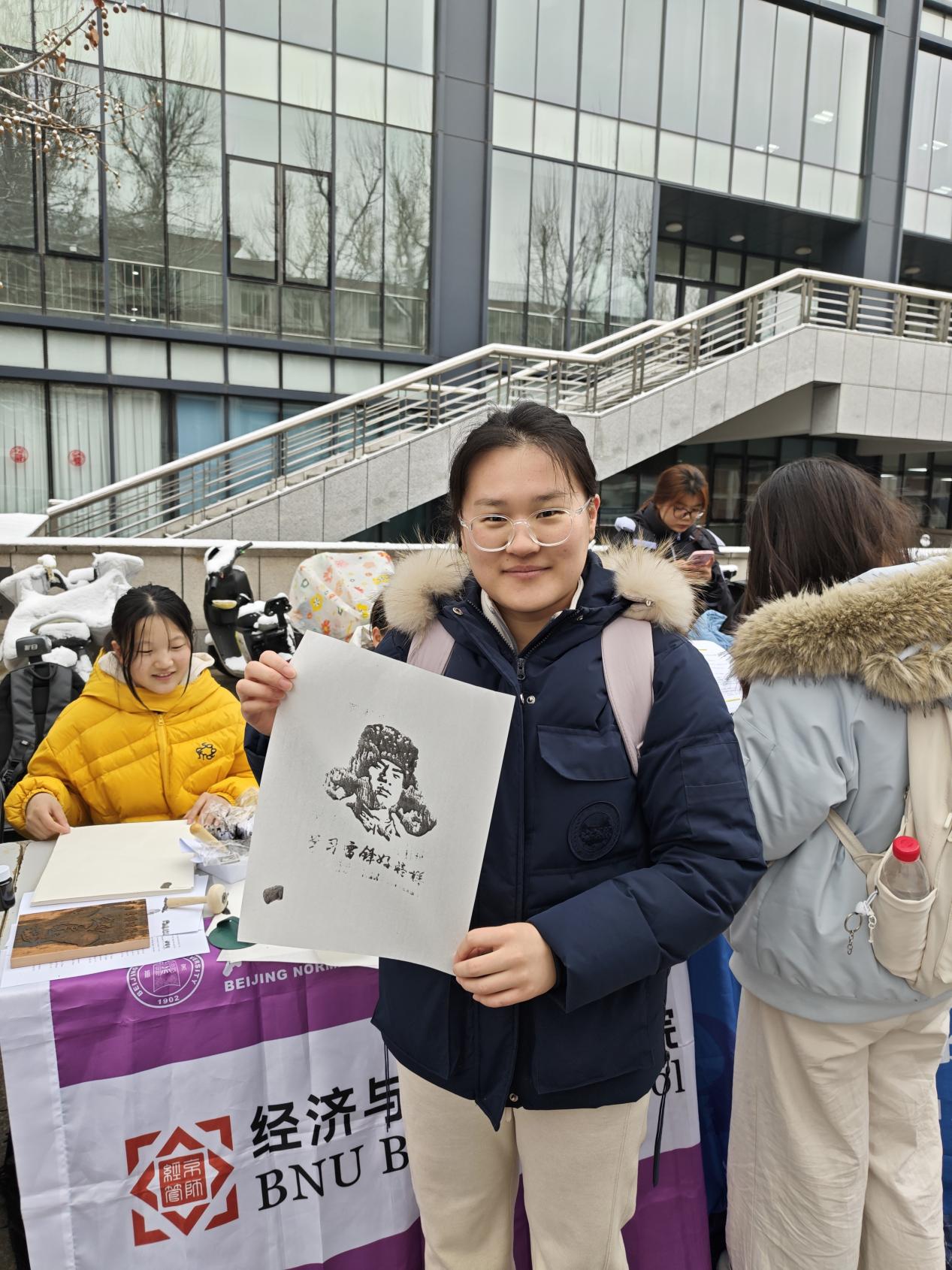 宣传部还准备了拓印工坊活动,让雷锋的形象从平面的影像,变成了可以触摸、感知的实体,通过简单的手工活动让同学们在动手实践中近距离感受雷锋同志的形象,强化对榜样的认同感与崇敬之心。