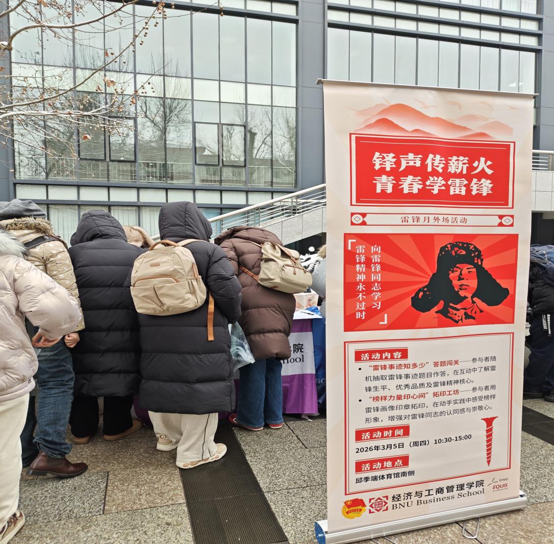 为引导同学们了解雷锋精神的起源与核心,把握雷锋精神的时代内涵,2026年3月4日星期四10:30-15:00,经济与工商管理学院团委经心服务部与宣传部在邱季端体育馆南侧联合举办了“铎声传薪火,青春学雷锋”的主题外场活动,下面来让我们一起回顾活动中的精彩瞬间吧!