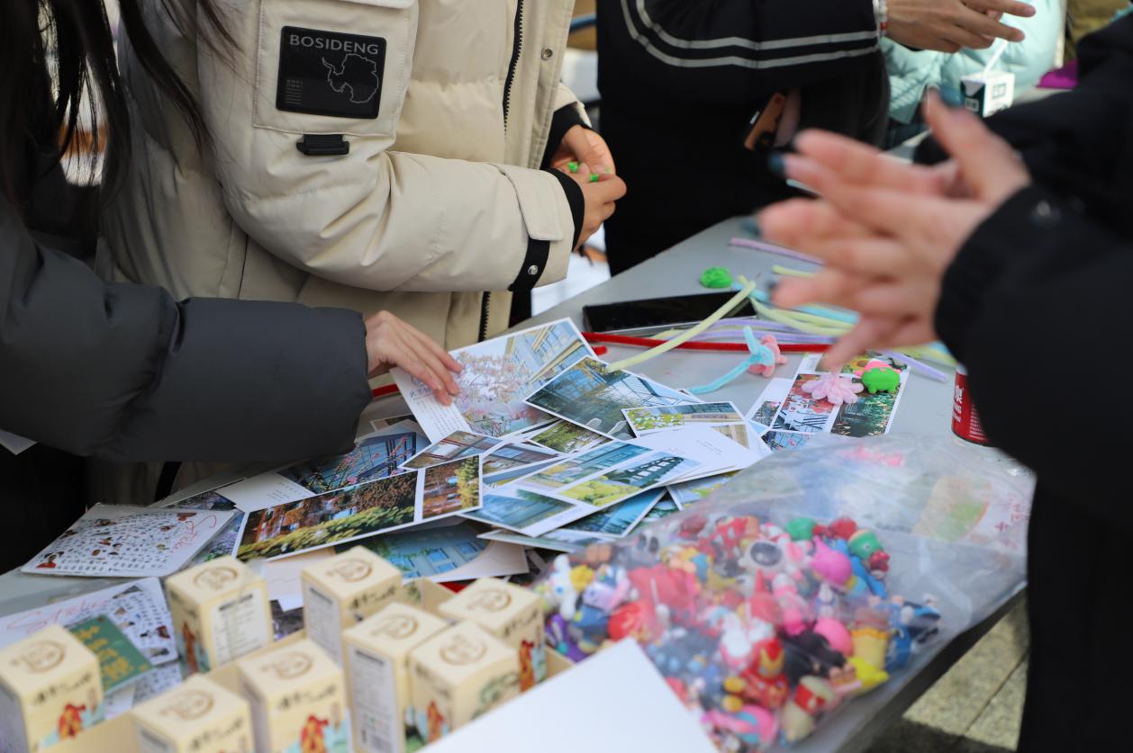 活动现场人头攒动,四大公益互动区前都排起了长队,同学们的热情与善意让初冬的校园暖意融融。在“‘益’起看世界—明信片传山河”区域,五彩的明信片很快铺满,字里行间既有对家乡风土人情的细致描摹,也有对留守儿童“愿你眼中有光,所见皆美景”的真挚祝福,这些承载着牵挂的明信片将寄往山区,为孩子们打开看世界的窗口。