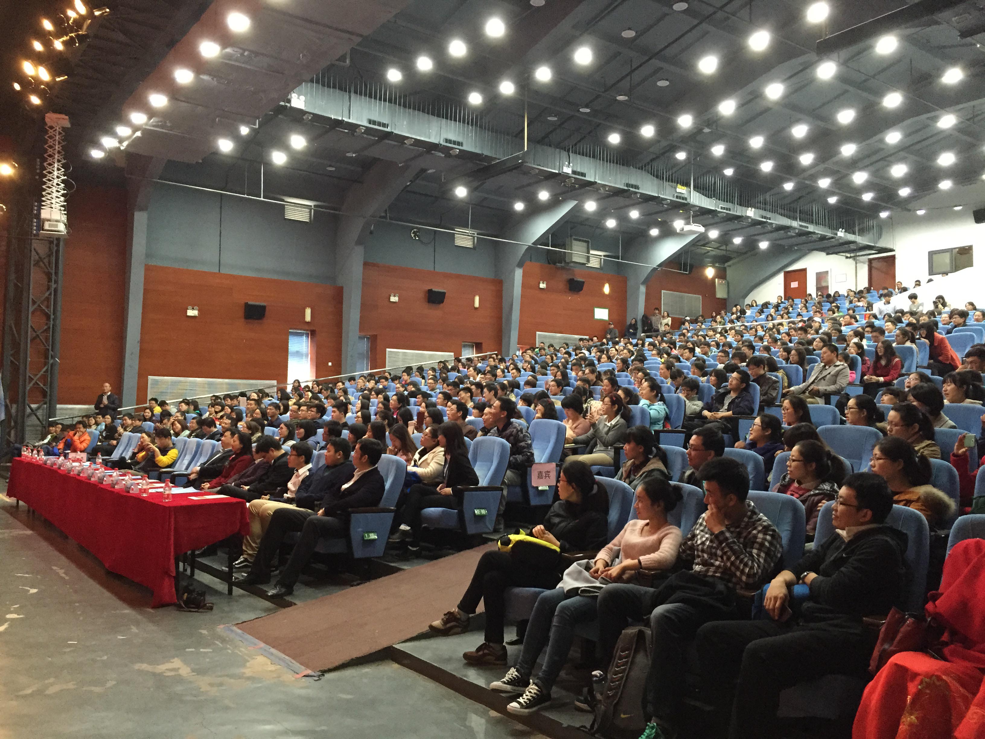 接下来,梦想发起人俞敏洪老师为师大学子带来“梦想之旅”的首场演讲。俞老师分析了当今移动互联网对商业以及教育业的冲击,发出教育是否会被互联网颠覆的疑问。他列举了许多生动形象的例子,表达出在“大众创业、万众创新”的时代背景下,体验型经济难以被替代的观点,表示十分支持、看好当代学生创业。通过对自身和企业家朋友们奋斗历程的比较,他强调做人应该具有“不断挖掘潜能,增强自信,一直前进”的精神,并告诫当代青年不要担忧面子,要利用给自己定任务的方式提升自我。同时,俞老师建议大学生应该在大学期间完成读书、交友、参与学生组织以及谈恋爱这四件事。他反复指出“将自己立起来”和“判断要坚定”的重要性。同学们都表示受益匪浅,笑声、掌声不断在学生活动中心响起。
