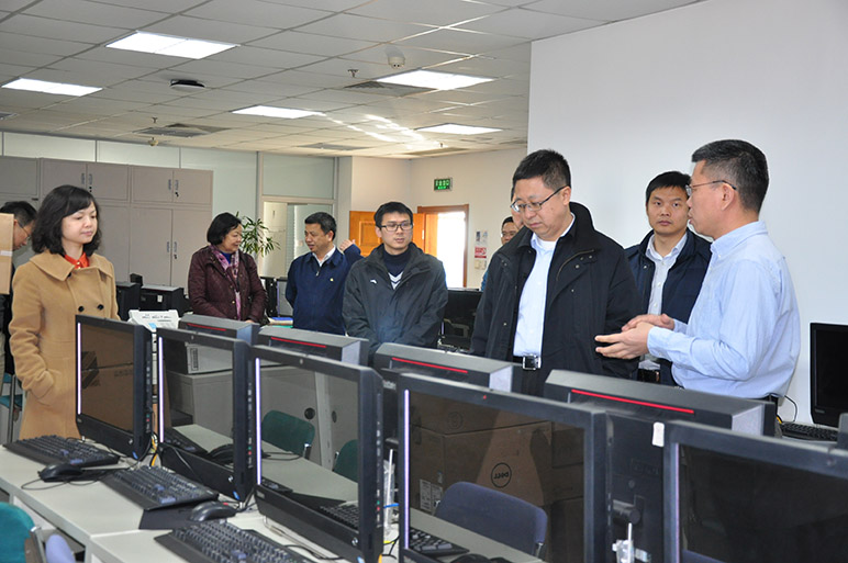 首先,一行众人来到中国收入分配研究院办公区,常铁威副司长仔细查看了办公环境,并详细询问了相关情况。随后来到位于前主楼的模拟中心机房,听取了关于中央处理器的简要汇报。作为模拟研究的基础---数据的收集及处理,是常副司长十分关心的问题,使用是否安全、数据处理速度及能力是否满足现有的研究等细致专业的问题。之后一行人来到后主楼,与经济与工商管理学院院长赖德胜及分党委书记孙志军一同参观经济与工商管理学院,以及模拟中心数据处理实验室,在听取实验室主任孙运传的简要汇报后,常副司长建议大力推广云平台,以期数据处理更加及时便利,同时保证数据使用的安全性。