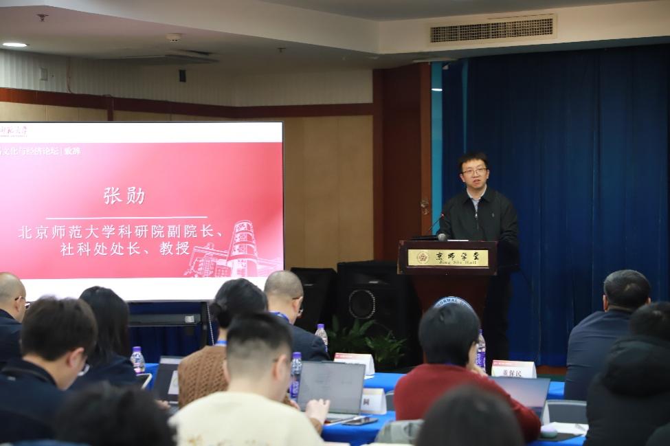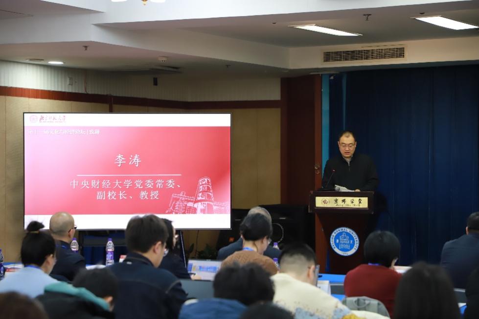 论坛主旨演讲第一阶段由北京师范大学财经处处长蔡宏波教授主持。中央财经大学副校长李涛教授以“关于文化与经济研究的几点思考”为题,系统梳理了西方经济学、中国传统经济思想及马克思主义理论中文化与经济的深层关联脉络。他从吴承明、费孝通两位学者的晚年思考切入,分析了西方前古典与古典经济学中文化对经济的统摄与嵌入作用,阐述了中国传统思想中“义以生利”“经世济民”等理念的价值根基,并指出马克思主义理论为理解文化与经济的辩证关系提供了重要框架。展望未来,李涛教授提出应从组织文化、文化自觉、数字技术冲击、人文价值提升四个维度拓展研究,呼吁学界“各美其美、美人之美、互相成就、彼此包容”,在扎根中国实践的基础上与世界对话,为文化经济研究注入新活力。