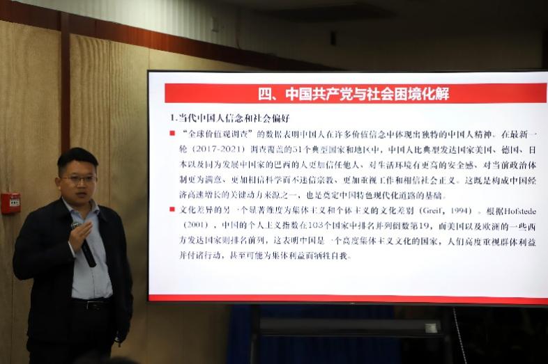 山东大学经济研究院副院长韦倩教授从合作视角解读中国式现代化,指出其核心是将合作范围从血缘扩展至整个社会。他分析近代中国四次现代化尝试,唯有改革开放取得成功,关键在于能否突破传统文化中“血缘至上”的合作局限。中国共产党以“为人民服务”的理念塑造集体认同、通过党员先锋模范作用带动合作精神扩散、借助土地改革与公有制等制度重塑人民“国家主人”的身份认同,这有效化解了个人与集体之间的“社会困境”,重塑了社会合作基础。韦倩教授认为,中国式现代化路径包含三层保障:微观上形成了内化的合作偏好;中观上公有制为主体为应对重大风险提供了组织基础;宏观上人民当家作主的体制赋予群众监督与调节的“高级惩罚者”角色。中国式现代化的五大特征,正是系统化解各类社会困境的体现,其成功源于文化转型与制度创新的有机结合。