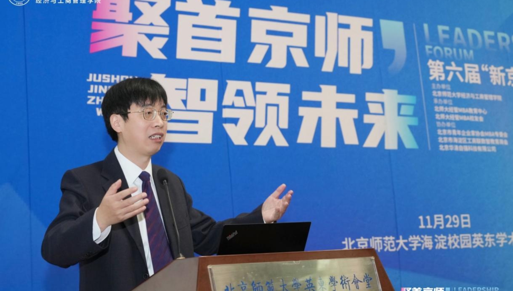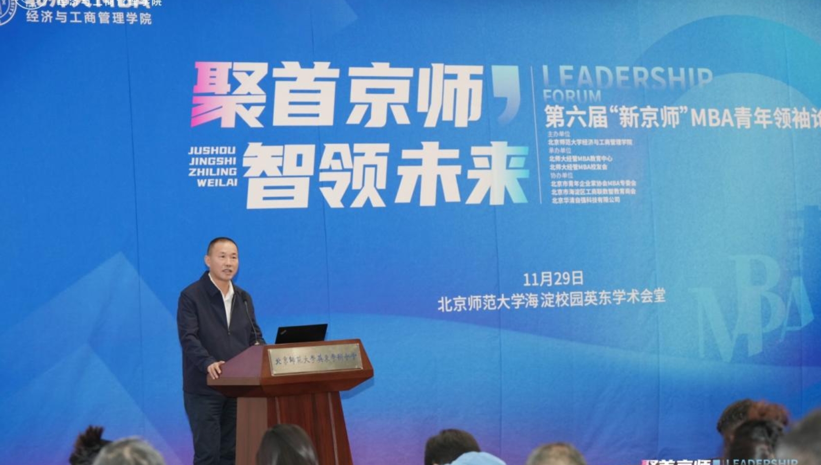 11月29日,以“聚首京师,智领未来”为主题的第六届“新京师”MBA青年领袖论坛在北京师范大学英东学术会堂成功举办。本次论坛设置主论坛以及“AI+人力赋能职业发展”“MBA品牌建设新范式”两场分论坛。企业高管、校外导师、兄弟院校MBA代表和在校师生共聚一堂,探讨数智时代管理人才培养与MBA教育发展新路径。论坛开幕式由北京师范大学经济与工商管理学院院长助理兼MBA教育中心主任周江华教授主持。