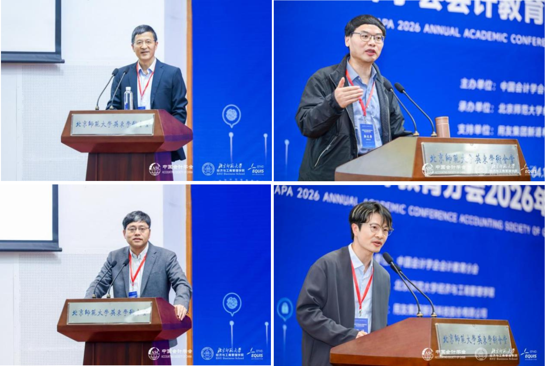 4月18日上午举行会议开幕式及主题演讲。北京师范大学常务副校长王守军、中国会计学会副秘书长胡宁、中国会计学会会计教育分会会长靳庆鲁分别致辞。王守军副校长代表北师大对与会嘉宾表示诚挚欢迎,强调2026年是十五五规划的开局之年,也是贯彻落实党的二十届四中全会精神的关键一年,他指出本届年会主题紧扣中央决策部署和对接国家战略需求,并期望通过会议实现思想碰撞和凝聚共识,推动会计学科发展。胡宁副秘书长代表学会祝贺年会顺利召开,指出会计教育分会应结合本届年会在新质生产力场景下的会计教育转型、人才培养模式创新等前沿问题做出突破口,真正让中国会计自主知识体系“进课堂”、“进头脑”。靳庆鲁会长在致辞中介绍了中国会计学会会计教育分会历史沿革及运行方式,指出本次年会主题是对会计学科转型发展及新质生产力培育的深度思考,强调会计学科必须主动思变求变,加快理论重构与方法创新,以适配国家战略与时代需求,期望与会专家就前沿问题深入探讨,推动会计理论研究与实践发展。开幕式由北京师范大学经济与工商管理学院崔学刚教授主持。