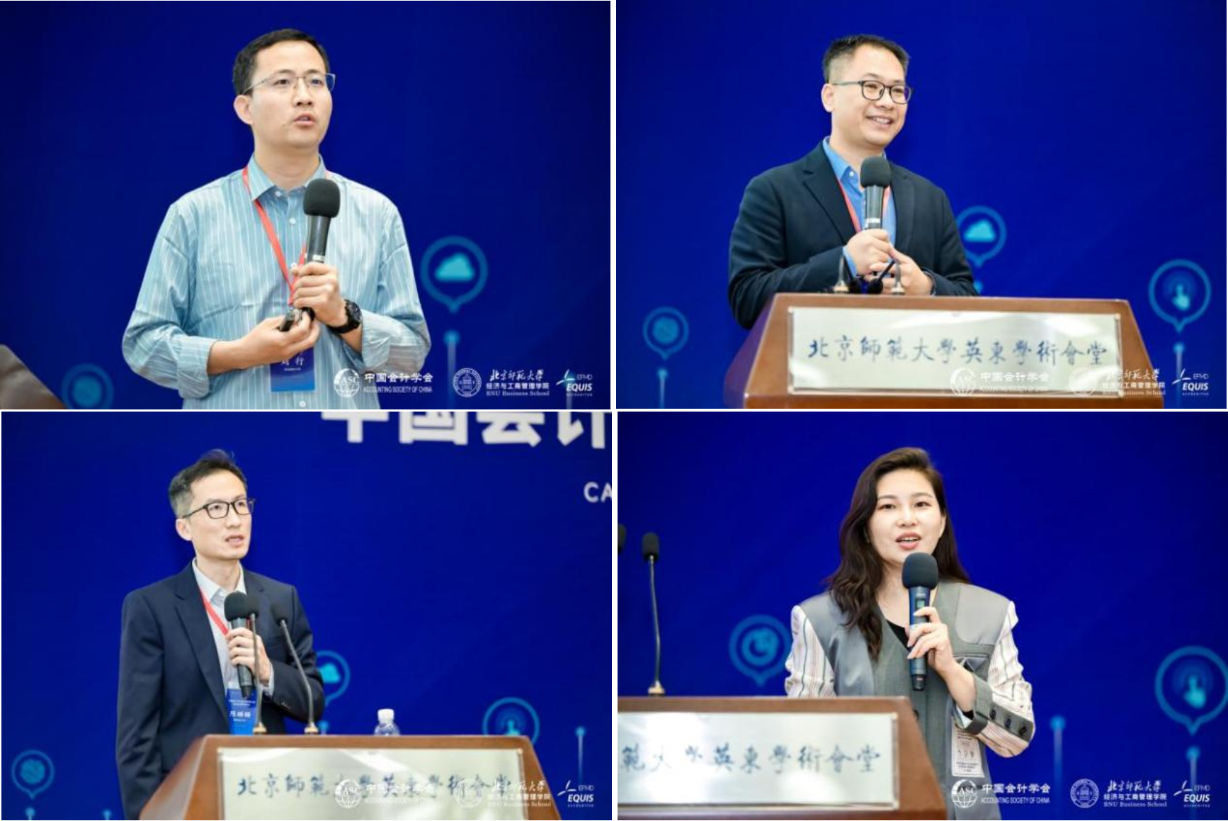4月19日上午的主旨演讲嘉宾有东北财经大学刘行教授、中央财经大学陈运森教授、香港城市大学陈旸旸教授和用友网络科技股份有限公司付建华副总裁,主旨演讲分别由南开大学刘志远教授、上海财经大学刘浩教授、北京大学麻志明教授和北京师范大学杨丹副教授主持。东北财经大学刘行教授的主旨演讲围绕其团队最新研究成果“Listing and Taxation: Evidence from A Fast-track Board”展开。他结合了新三板公司挂牌后大额分红的普遍现象和我国差异化股息税政策,以及新三板挂牌门槛低、成本低、流程快等特征,提出个人控股企业会以避税为动机选择挂牌,形成制度套利,并展示了相关实证证据,从而揭示了多层次资本市场存在的政策漏洞。陈运森教授聚焦于生成式AI对会计研究底层逻辑的改变。报告阐述了多模态数据如何拓展信息边界,推动研究方法向大模型指标生成与智能体模拟演进。同时,报告直击应用痛点,剖析了模型缺乏可解释性、AI幻觉及不可复现等研究伦理困境。报告呼吁未来研究应迈向跨学科范式重构,倡导学者在拥抱AI时成为“负责任的创新者”。香港城市大学陈旸旸教授以“会计与供应链”为主题分享了最新研究成果。他聚焦于会计信息披露在缓解供应链摩擦、促进供应链合作关系形成方面所发挥的作用,以 2003 年欧盟非上市公司财务报告披露法案为外生冲击,发现强制财务报告披露显著提高了欧盟非上市公司被选为供应商的概率,有效降低了信息不对称与合作筛选成本。用友网络科技股份有限公司副总裁付建华围绕“AI赋能会计与财务创新”展开主旨演讲,介绍了当前AI的实践应用与未来发展。