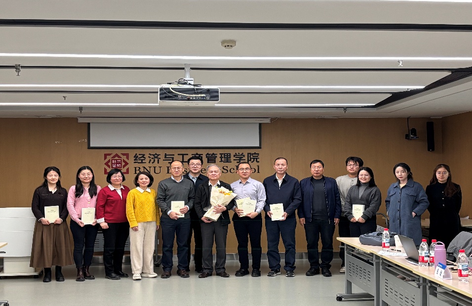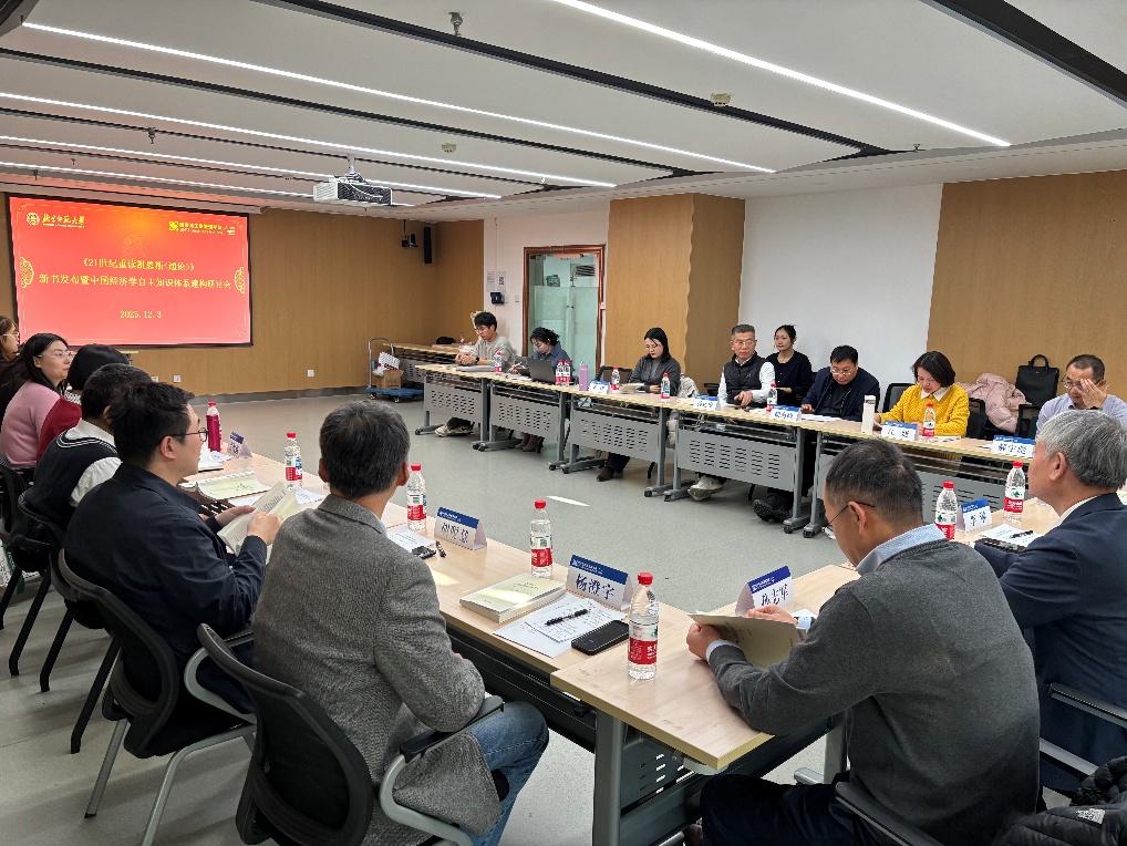 2025年12月3日下午,《21世纪重读凯恩斯<通论>》新书发布暨中国经济学自主知识体系建构研讨会于北京师范大学京师大厦顺利举办。会议特邀新书作者、北京师范大学经济与工商管理学院李翀教授作主旨演讲,清华大学新质生产力研究院院长蔡继明教授、北京大学经济学院院长张辉教授、北京师范大学经济与工商管理学院杨澄宇教授、首都经济贸易大学经济学院郝宇彪教授作交流讨论。经济与工商管理学院院长戚聿东、党委书记孙志军、副院长江婕以及学院多位教师代表参加会议。江婕主持会议。