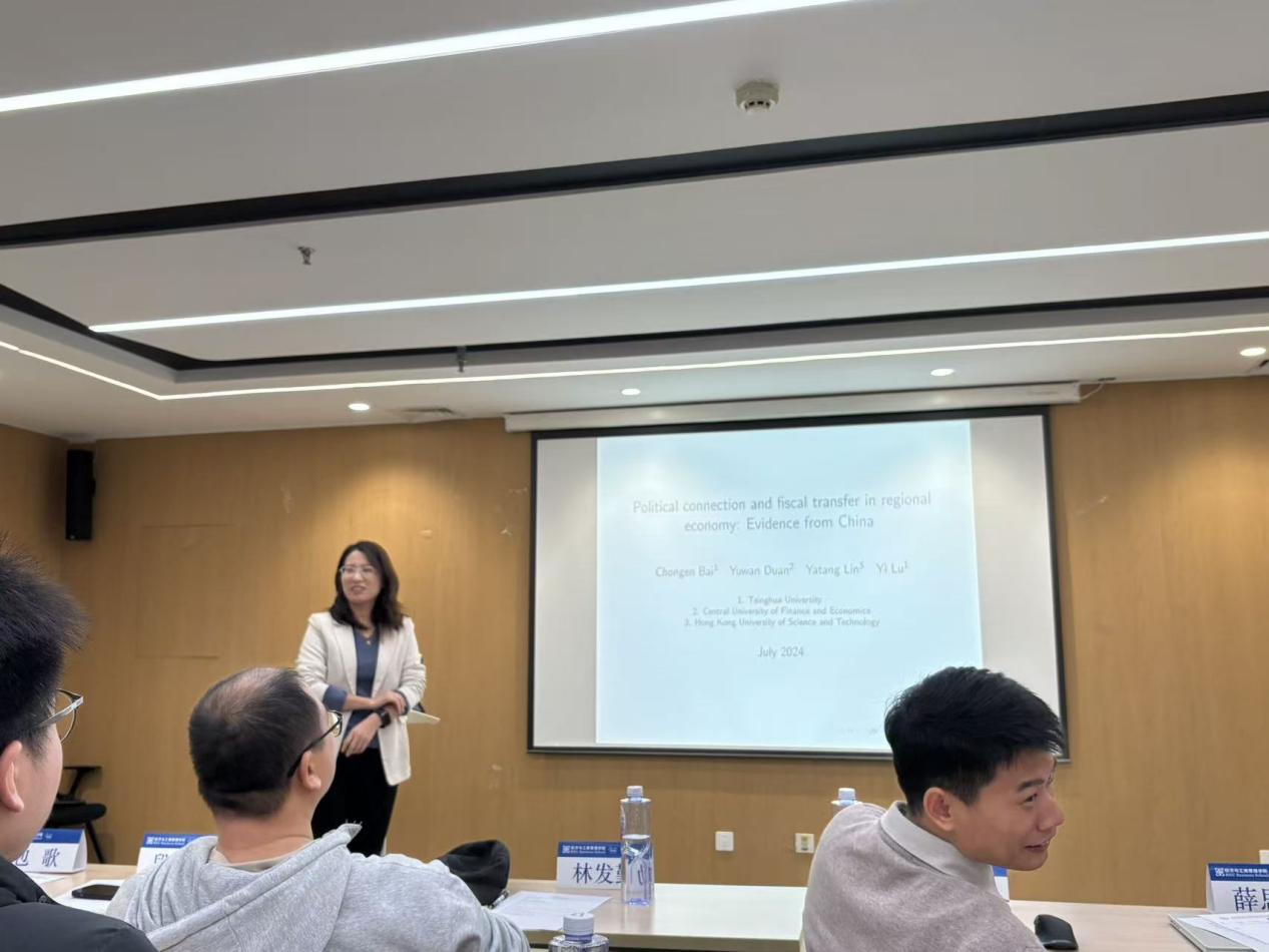 中央财经大学段玉婉教授作了题为 Political Connections and Fiscal Transfers in the Regional Economy的报告。文章系统分析了中央—地方财政转移支付的分配机制。基于省级主要领导与中央部委官员的履历匹配数据,研究发现,省级领导与相关部委之间存在工作经历交集时,该省份获得的财政转移支付规模平均提高约6%,且这一效应主要体现在具有关键审批与预算职能的“关键部委”。在此基础上,报告借助空间均衡模型评估由政治关联驱动的转移分配对福利和地区差距的影响。结果表明,剔除政治关联会略微降低全国福利,但有助于缩小地区间不平等;若取消转移支付,则虽能提升效率,却会显著放大地区间发展差距。