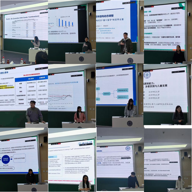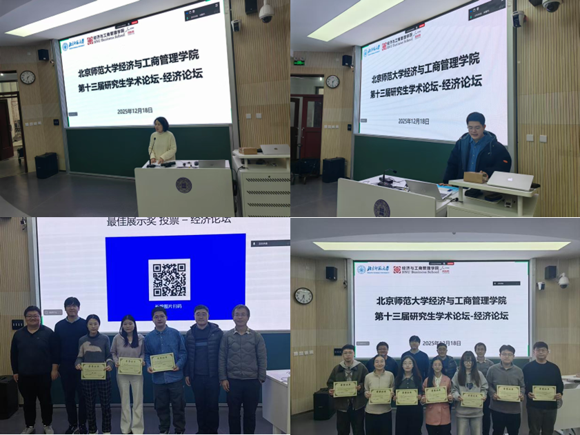 为深化学术训练与研讨交流机制,进一步营造严谨求实的研究氛围,激发学生在学术领域的研究兴趣,并为师生与研究生同侪之间提供充分对话、观点碰撞与成果展示的优质平台,2025年12月18日下午,北京师范大学经济与工商管理学院第十三届研究生学术论坛同步在电子楼阶梯教室与教十楼111顺利举办。