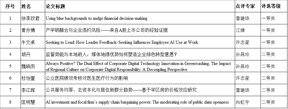 管理论坛共评审出8篇学术论文进行汇报展示,专家组在评议基础上评选出3篇一等奖论文、5篇二等奖论文并颁发奖状。在展示过程中,各位评审老师对同学们提交的研究成果进行了深度剖析,多维度地提供了富有建设性的专业意见。老师们从研究命题的原创性、科研手段的科学性、学术语言的规范表达,以及分析问题的逻辑严谨度进行了专业的点评,针对部分同学在论证思路和结构层次上的欠缺,给予了精准的指导,并勉励学生们深耕具有学术生命力的课题,在理论推演与社会实践的结合中不断探索,提升学术研究的厚度与科学性。
