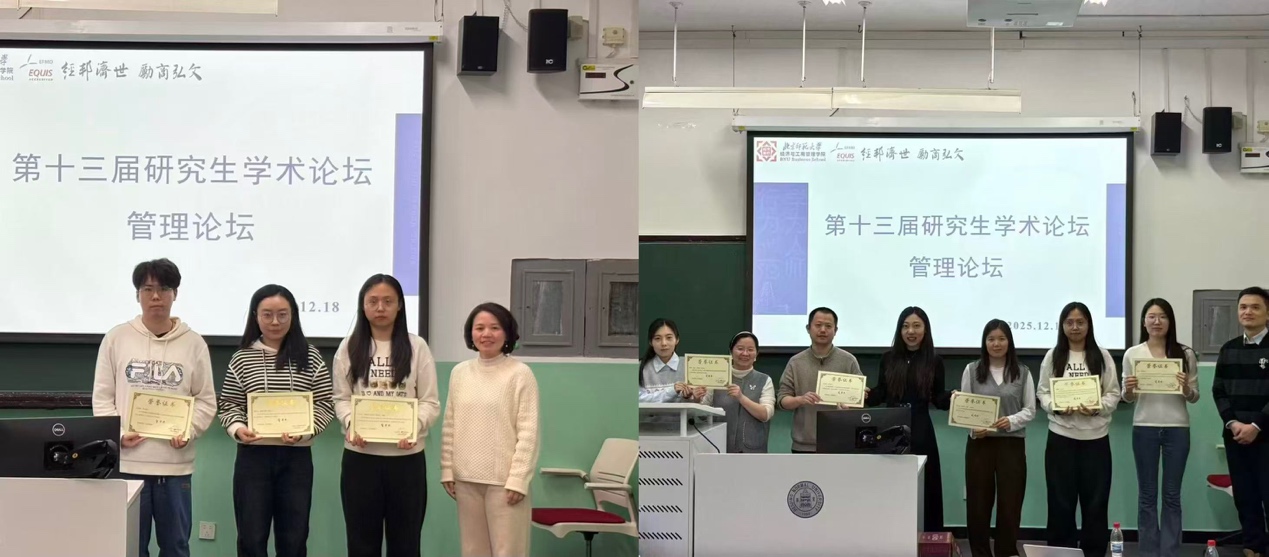 第十三届研究生学术论坛至此圆满落幕,与会研究生同学与专家学者围绕研究议题开展了充分而深入的交流。论坛现场反响热烈,研究生积极参与讨论与展示,体现出经管学子对学术研究的持续关注与投入。依托研究生学术论坛这一常态化平台,期待同学们秉承“励志弘学,求是创新”的精神,夯实专业知识基础并提升学术创新能力,推动形成更具质量与影响力的研究成果。第十四届研究生学术论坛,再会!